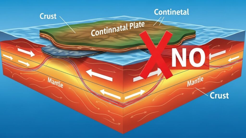- プレートの動き: 地球の地殻は、数十枚のプレートで覆われています。大陸はこのプレートの上に乗っており、プレートは年間数センチの速度で動きますが、「大陸自体」がプレートの下に沈み込むことはありません。